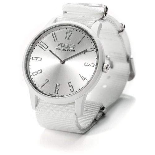 Orologio Solo Tempo Di 4Us Cesare Paciotti. Orologio Fabien Analogico Al Quarzo Con Movimento Miyota 2025. Questo Modello Ha Cassa In Plastica Della Dimensione Di 40Mm, Il Quadrante È Tondo White, Numeri Silver E Il Cinturino È Di Tipo Nato In Tessuto Tecnico Bianco Con Chiusura A Fibbia Steel . Il Vetro È Di Tipo Minerale Antigraffio . La Resistenza All'Acqua È Di 3 Atm - 30M. La Referenza È T4Up151