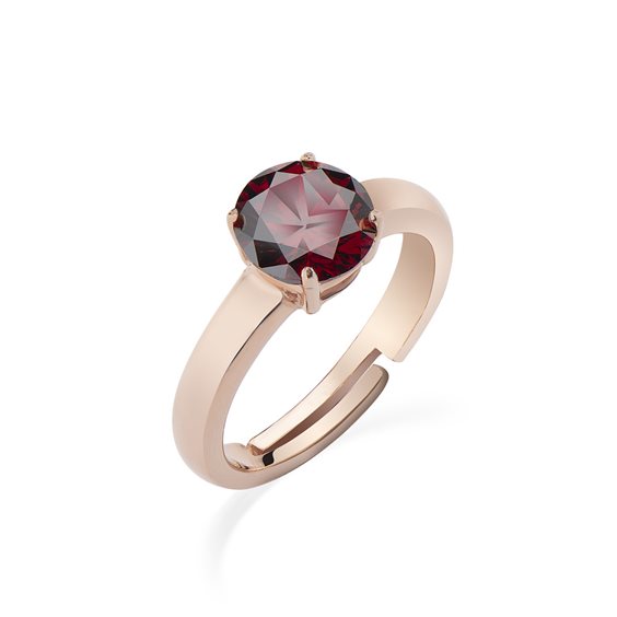 Anello Rosè Zircone Solitario Rubino - Anello Argento 925 zircone rubino - Rosè - MISURA REGOLABILE