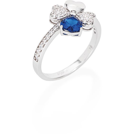 Anello Da Donna Di Amen Della Collezione Quadricuore. Gioiello Realizzato In Argento Rodiato 925 Con Zirconi Bianchi E Blu. Anello Di Misura 18. La Referenza È Rqubbl-18