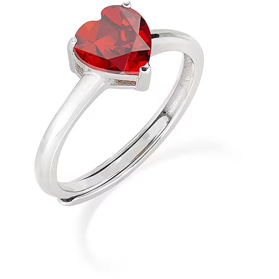 Anello da donna di Amen della collezione Ti Amo. Anello in argento 925 e zircone rosso . Anello in argento rodiato. Misura anello: 16/20. Diametro cuore: 6mm.