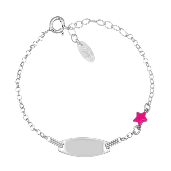 Bracciale in AG925 con smalto fucsia - Rodio - Lungh. 13 + 3 cm - targh. 1,5 cm - charm 5 mm