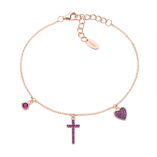 Bracciale Argento 925 e zirconi rubino - Rosè - Lunghezza 16 cm + 3 cm - corredato da shopper, scatola e garanzia