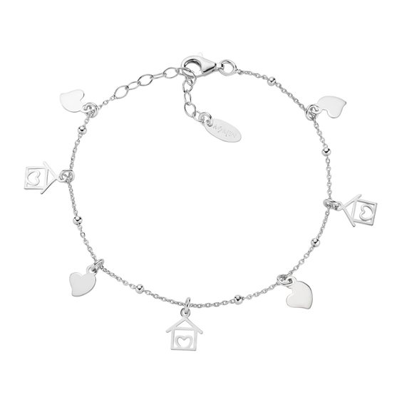 Bracciale Charm Casa e Cuore Rodio - Bracciale in AG925 - Rodio - Lunghezza 16 + 3 cm