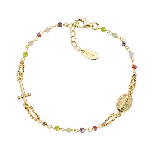 Bracciale Argento 925 cristalli amaranto rosa e verdi - Dorato - Lunghezza 18 cm + 2 cm - corredato da shopper, scatola e garanzia