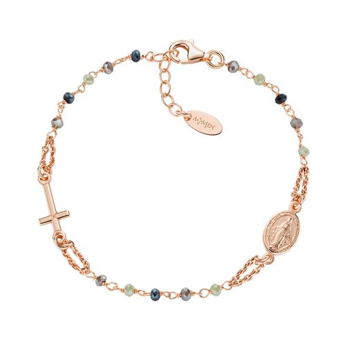 Bracciale Argento 925 cristalli fumè tortora e verdi - Rosè - Lunghezza 18 cm + 2 cm - corredato da shopper, scatola e garanzia
