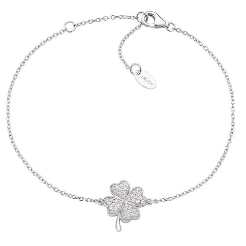 Bracciale Quadrifoglio Zirconato Rodio - Bracciale in AG925 e e zirconi bianchi - Rodio - Lunghezza 16+3 cm - Charm Ø 1 cm