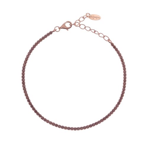 Bracciale in AG925 con zirconi champagne - Rosè - (Lungh. 17 + 3,5 cm; Ø 1 mm)