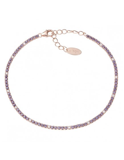 Bracciale in AG925 con zirconi viola e bianchi - Rosè - (Lungh. 17 + 3,5 cm, Ø 1 mm)