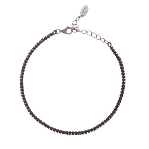 Bracciale in AG925 con zirconi neri e rossi - Rutenio - (Lungh. 17 + 3,5 cm; Ø 1 mm)