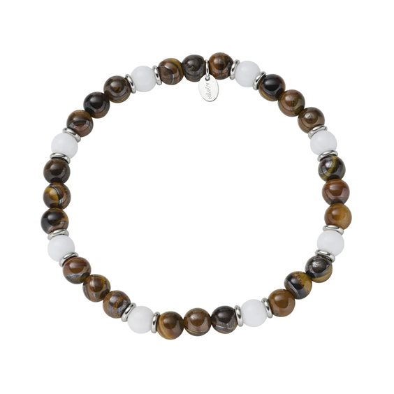 Bracciale con Acciaio e Agata Marrone e Bianca Bracciale elastico con perle di agata colorata da 6 mm ed elementi in acciaio inossidabile.
