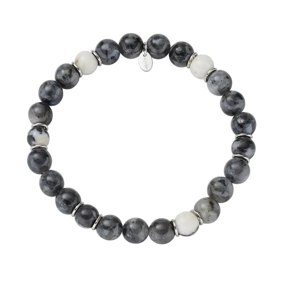 Bracciale con Acciaio e Agata Grigia e Bianca Bracciale elastico con perle di agata colorata da 8 mm ed elementi in acciaio inossidabile.