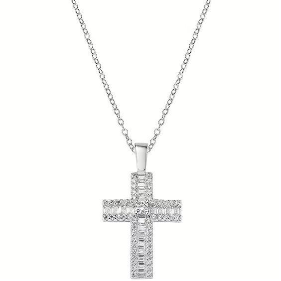 Collana da donna di Amen della collezione Croci. Collana in argento 925 e zirconi bianchi con finiture in rodio. Misure: Lunghezza 40 + 5 cm, croce 2 x 1,5 cm - zircone centrale 2 mm