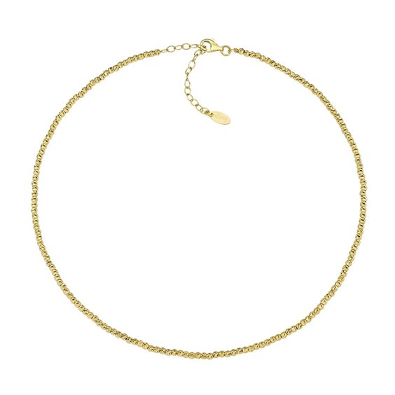 Collana Dorata Riflessi di Luce con Sfere Diamantate Collana in argento 925 dorato con sfere diamantate da 2,5 mm. La collana ha lunghezza regolabile da 36 a 41 cm e chiusura moschettone