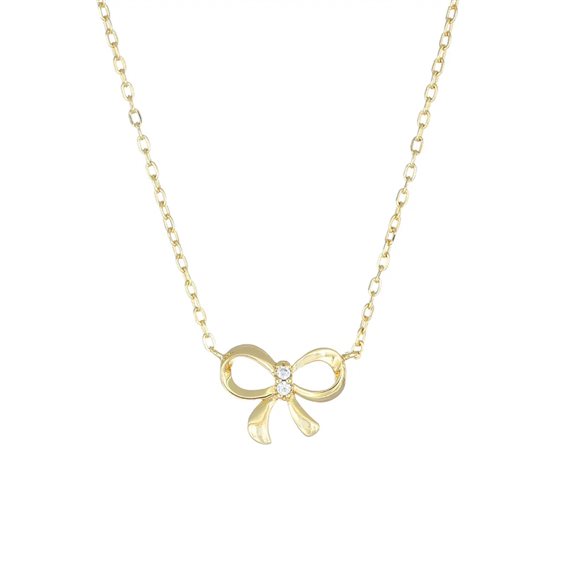 Collana Dorata Fiocco con Zirconi Bianchi Collana a catena in Argento 925 dorato. Al centro, un piccolo fiocco con due zirconi bianchi. Lunghezza regolabile da 40 a 45 cm con chiusura a moschettone.