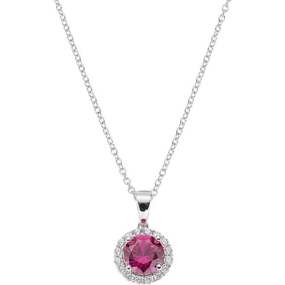 Collana da donna di Amen della collezione Diamond. Gioiello in argento 925 con placcatura in rodio e zirconi bianchi e zircone rosso. La lunghezza è: 40 + 5 cm.