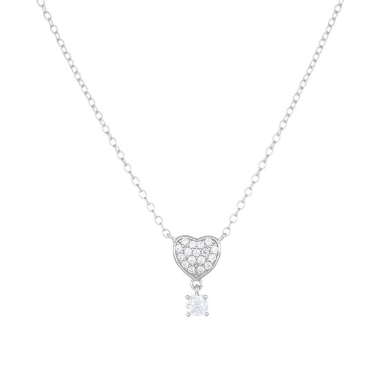 Collana Cuore e Punto Luce con Zirconi Bianchi Collana a catena in Argento 925 rodiato. Pendente con cuore e piccolo punto luce di zirconi bianchi. Lunghezza regolabile da 38 a 43 cm con chiusura a moschettone.