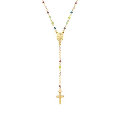 Collana Argento 925 cristalli amaranto rosa e verdi - Dorato - Lunghezza 48 cm + 4 cm - corredato da shopper, scatola e garanzia