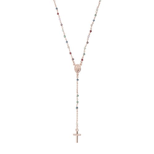 Collana in AG925 e cristalli multicolor - Rosè - Lunghezza 48+4cm - grani Ø 2,5mm