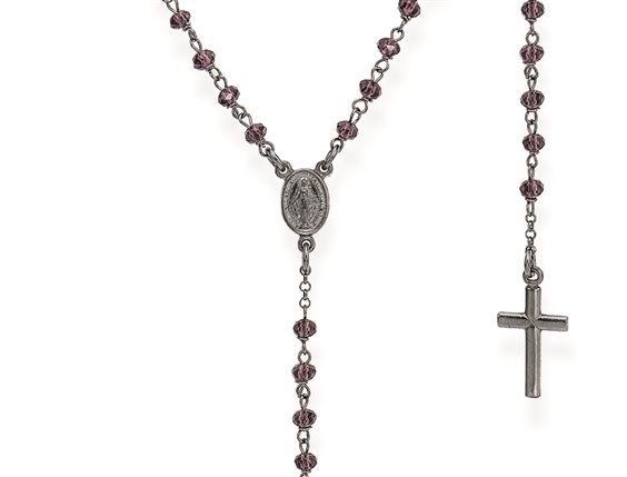 Rosario classico in AG925 e cristalli vinaccia (Lungh. 50cm - Grani Ø 3mm)