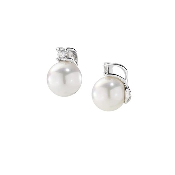 Orecchini a lobo in argento 925 rodiato con zircone punto luce e perla freshwater da 8 mm. Chiusura a perno con farfallina. L'orecchino ha altezza totale 1 cm: la perla è 8 mm, lo zircone punto luce 2 mm.