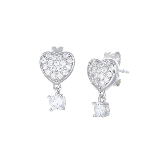 Orecchini Cuore e Punto Luce con Zirconi Bianchi Orecchini a lobo in Argento 925 rodiato. Cuore con zirconi bianchi e piccolo punto luce pendente. Chiusura a farfallina.