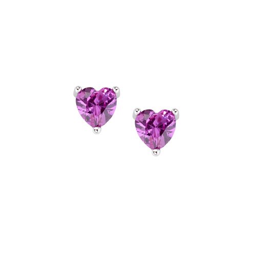 Orecchini Cuori Fucsia - Orecchini in AG925 con zircone fucsia taglio cuore - Rodio - 6 mm