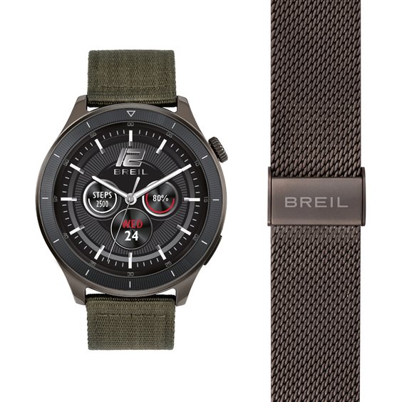 Prodotto: orologio accessorio uomo Breil B&Me TW2034 Smartwatch da uomo di Breil Watches della collezione Bc-1. Smartwatch con Bluetooth e ricarica wireless. Capacità batteria 300 mAh. Cassa in lega metallica black e cinturino in canvass dark grey. Chiusura ad ardiglione. Secondo cinturino intercambiabile in acciaio IP gun maglia milanese e chiusra a scorrimento. La referenza è: TW2034. Questo accessorio verrà spedito con Scatola Originale Breil se prevista dal brand