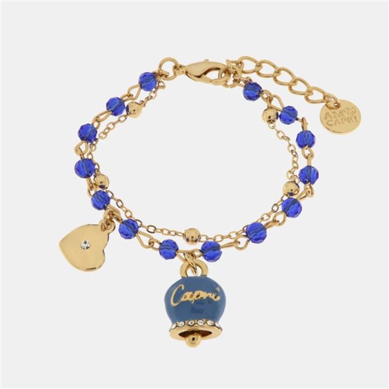 Bracciale in Metallo multifilo con pietre blu e campanella Capri blu Materiali: Metallo Base, Pietra: smalto e cristalli, Galvanica: Placcato Oro, Varianti o Misura: 17+3Cm., Colore: BLU. Forma: PIETRINE.