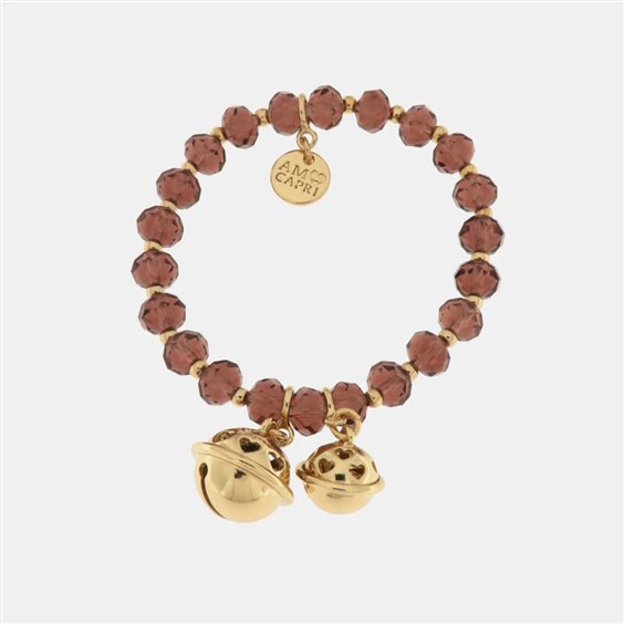 Bracciale in Metallo con sonagli e pietre Materiali: Metallo Base, Pietra: cristalli e smalto, Galvanica: Placcato Oro, Varianti o Misura: REGOLABILE ELAST, Colore: N.D.. Forma: sonaglio.