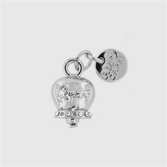 Ciondolo in Metallo campanella con scritta capri e cristalli bianchi Materiali: Metallo Base, Pietra: Smalto e cristalli, Galvanica: Placcato Rodio, Varianti o Misura: N.D., Forma: CAMPANELLA.