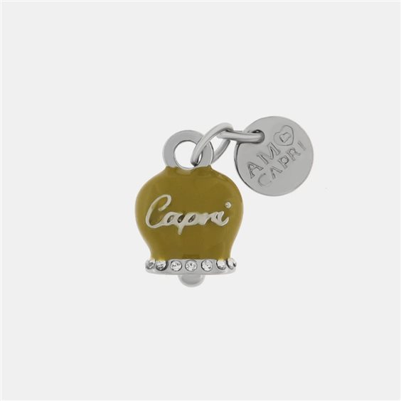 Ciondolo in Metallo Con campanella portafotuna Capri Materiali: Metallo Base, Pietra: smalto e cristalli, Galvanica: Placcato Rodio, Forma: CAMPANELLA.