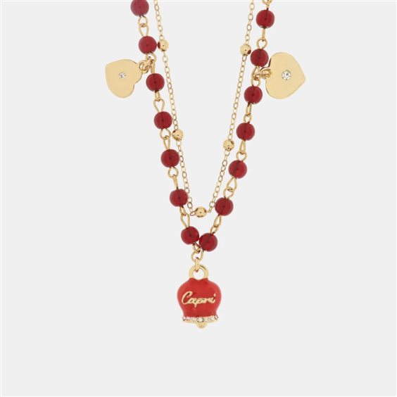 Collana in Metallo Con campanella portafortuna Capri Materiali: Metallo Base, Pietra: smalto e cristalli, Galvanica: Placcato Oro, Varianti o Misura: 45+5cm., Colore: SIAM. Forma: CAMPANELLA.