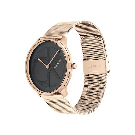 Orologio Calvin Klein Collezione Iconic Mesh, Solo Tempo movimento al Quarzo. Cassa (diam. 40 mm) e Cinturino Maglia Milano in Acciaio Rose Gold, Quadrante Nero con logo CK. Resistenza all’acqua fino a 3 ATM.