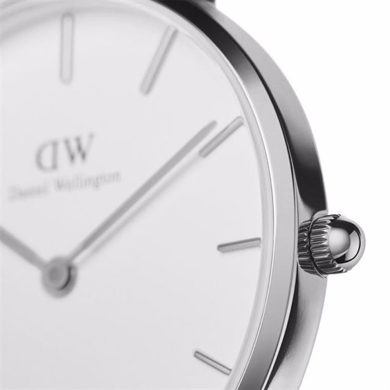 Orologio Solo Tempo Da Donna Collezione Classic Petite. Modello Durham. Cassa 32Mm, Con Quadrante Di Colore Bianco. Orologio Con Cassa In Acciaio Di Colore Argento, E Cinturino In Pelle Di Colore Marrone ansa 14.