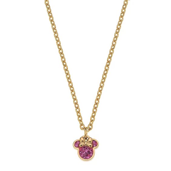 Collana da bambina di Disney della collezione preziosi in acciaio mickey and minnie. Collana realizzata in acciaio di colore giallo con zirconi di colore rosa. Il soggetto è minnie. Dimensioni: cm 35,50 + 5 di estensione. La chiusura è con moschettone