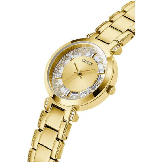 Collezione: Crystal Clear Colore Quadrante: Oro Materiale Cinturino: Acciaio Materiale Cassa: Acciaio Dimensione della Cassa: 33mm Resistenza all’acqua: 30m – 3ATM – 3bar Movimento: Quarzo Funzioni: Impermeabile Colore del Cinturino: Oro Chiusura del Cinturino: Deployante Indici: A Bastoni Forma Orologio: Rotonda