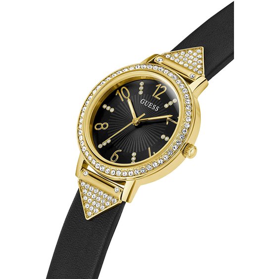 .Orologio con resistenza all'acqua fino a 30m. Il quadrante è nero con finitura Sunray. La cassa è di 32mm di colore oro con finitura lucida realizzata in acciaio inossidabile con cristalli. Il cinturino è di colore Nero con finitura Liscia e realizzato in pelle. La chiusura è Fibbia ad ardiglione. Movimento: quarzo. Display: Analogico.