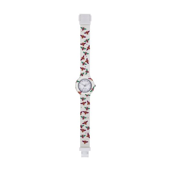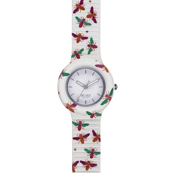 Il tema dell’ape, super cool e attuale, viene esploso grazie alla tecica “water transfer”: decine di piccole apine volano infatti leggere sul cinturino in silicone dell’orologio Hip Hop.
