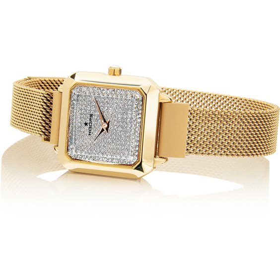 Prodotto: orologio solo tempo donna Hoops Carrè 2621LD-G Orologio Solo Tempo Da Donna Di Hoops Della Collezione Carre' Yellow Gold Full Pave'. Orlogio Con Cassa In Metallo Di Forma Quadrata Della Dimensione Di 26Mmx26Mm. Quadrante Full Pavè, Bracciale In Maglia Milanese Con Chiusura A Calamita Della Lunghezza Di 14Mm. La Resistenza All'Acqua È Di 2Atm
