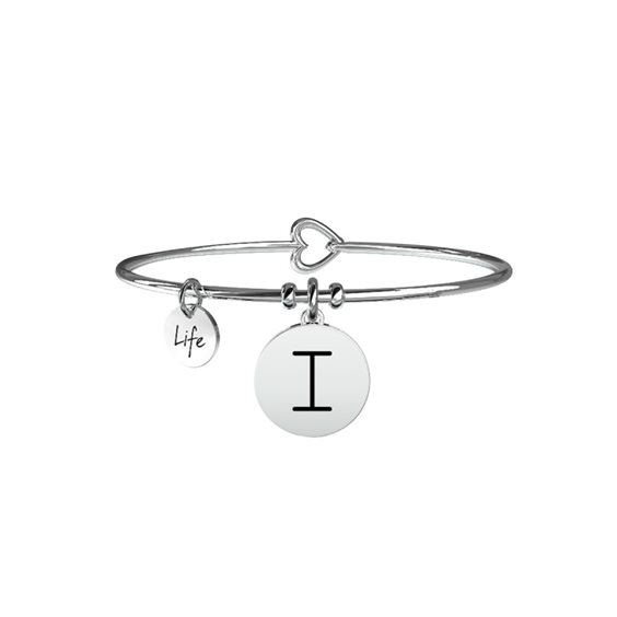 Bracciale Kidult in acciaio ipoallergenico con pendente rotondo con lettera I incisa