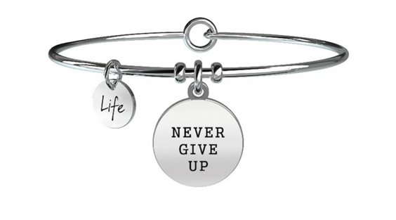 NEGER GIVE UP Never give up bracciale in acciaio 316L ipoallergenico,ciondolo con zircone