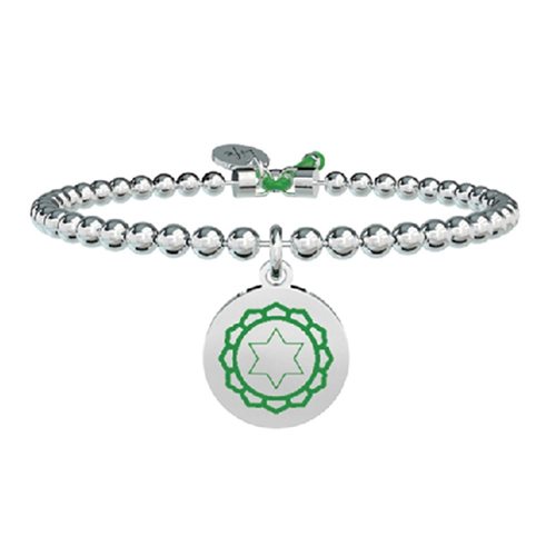 Bracciale in acciaio di Kidult della Collezione Spirituality. IV CHAKRA VERDE - AMORE 'Prato immenso, in cui le emozioni del cuore corrono libere e spontanee. Il contatto con la natura dei tuoi sentimenti si trasforma in energia consapevole, per esprimere tutte le sfumature dell'amore.' La frase è presente anche all'interno della confezione del bracciale.