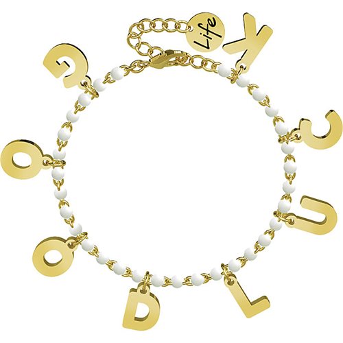Bracciale Da Donna Di Kidult Della Collezione Symbols. Bracciale In Acciaio Color Oro Rosa Con Ciondoli Good Luck E Catena Rolò Con Inserimenti In Smalto Bianco. Applicazioni In Smalto Sulla Catena. Misura Regolabile, Lunghezza Da 16 Cm. A 19 Cm. Materiale: Acciaio 316L Con Pvd Oro, Smalto. Gioiello Con Frase: Sorridi Agli Imprevisti E Accetta L'Imprevedibile. La Buona Sorte Ti Sorriderà