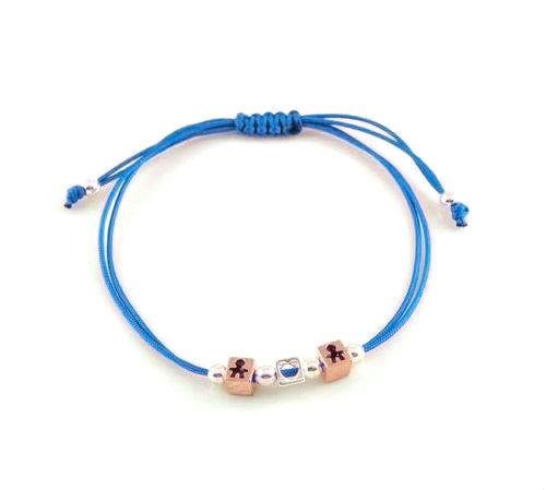 Bracciale in cordino nautico color turchese con chiusura in paracord regolabile a piacere, cubetti in oro rosa 9 kt a maschio con in mezzo un cubetto d'argento 925 con il cuore, palline in argento 925.