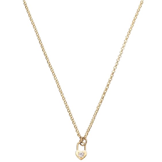 Collana da donna di Liu Jo della collezione Essential realizzata in acciaio pvd oro giallo con simbolo pendente cuore a lucchetto con zirconi bianchi. Lunghezza 45 cm chiusura con moschettone. Materiale ACCIAIO E PVD ORO,