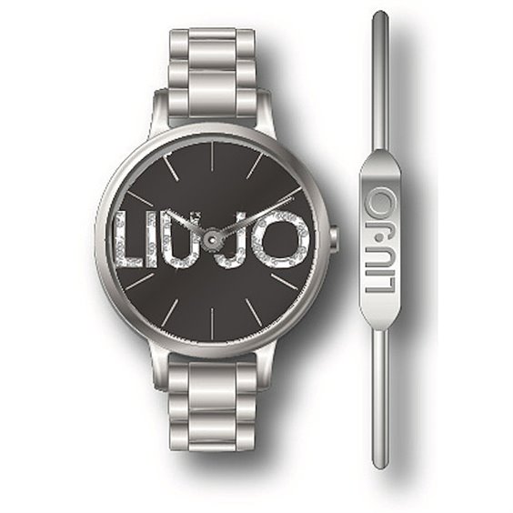 Set Composto Da Bracciale E Orologio Solo Tempo Da Donna Di Liu Jo Della Collezione Couple. Orologio Con Cassa In Acciaio Del Diametro Di 32 Mm, Quadrante Di Colore Nero Con Indici A Tacche E Cinturino In Acciaio. Il Bracciale Bangle Che Compone Il Set È Realizzato In Ottone.