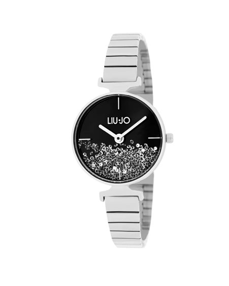 Orologio solo tempo della collezione Liu Jo Dancing Supreme da donna. Colore cassa orologio: argento; colore del quadrante: nero; colore del bracciale: argento. Cassa di diametro 32 mm in acciaio inossidabile 316L impreziosita da cristalli Swarovski che sembrano danzare sul quadrante a ogni movimento del polso. Vetro minerale. Bracciale in acciaio inossidabile 316L e chiusura deployante. Movimento al quarzo Miyota Cal. GL26. Classificazione di impermeabilità (WR) 3 ATM: