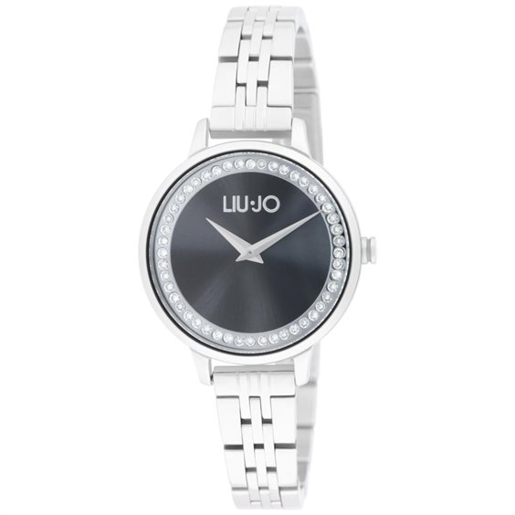 Orologio donna Liu Jo della collezione Shine realizzato con cassa in acciaio color silver con un diametro di 32 mm. Il quadrante è color nero con indici color silver. Ha un vetro minerale e la resistenza all'acqua è di 3 ATM. Il cinturino è realizzato in acciaio color silver con una chiusura deployante con doppio pulsante.