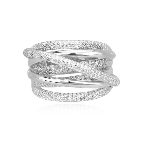 Anello A Fascia Da Donna Di Mabina Gioielli. Anello A Fascia In Argento Con Intrecci In Pavé Di Zirconi. Altezza Anello: 14 Mm