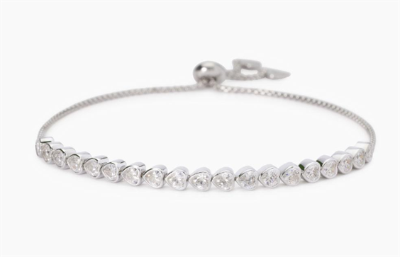 Bracciale in argento 925/°°° rodiato con catena veneta 1.5 mm e tennis di zirconi taglio cuore 3x3 mm, lunghezza regolabile da 16 a 22 cm